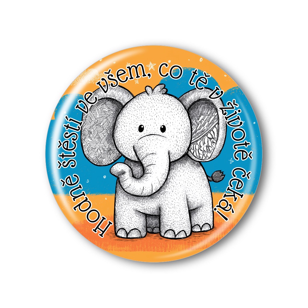 Připínací placka - Slon s nápisemPlacky odesíláme ihnedcena od 35 Kčcena od 29 Kč bez DPH