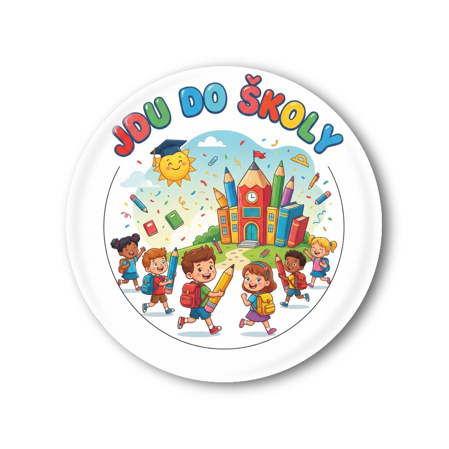 Placka o velikosti 44 mm nebo 58 mm. Motiv na přední straně je potažen ochrannou UV fólií, zadní strana je v celokovovém provedení se zavíracím špendlíkem.
