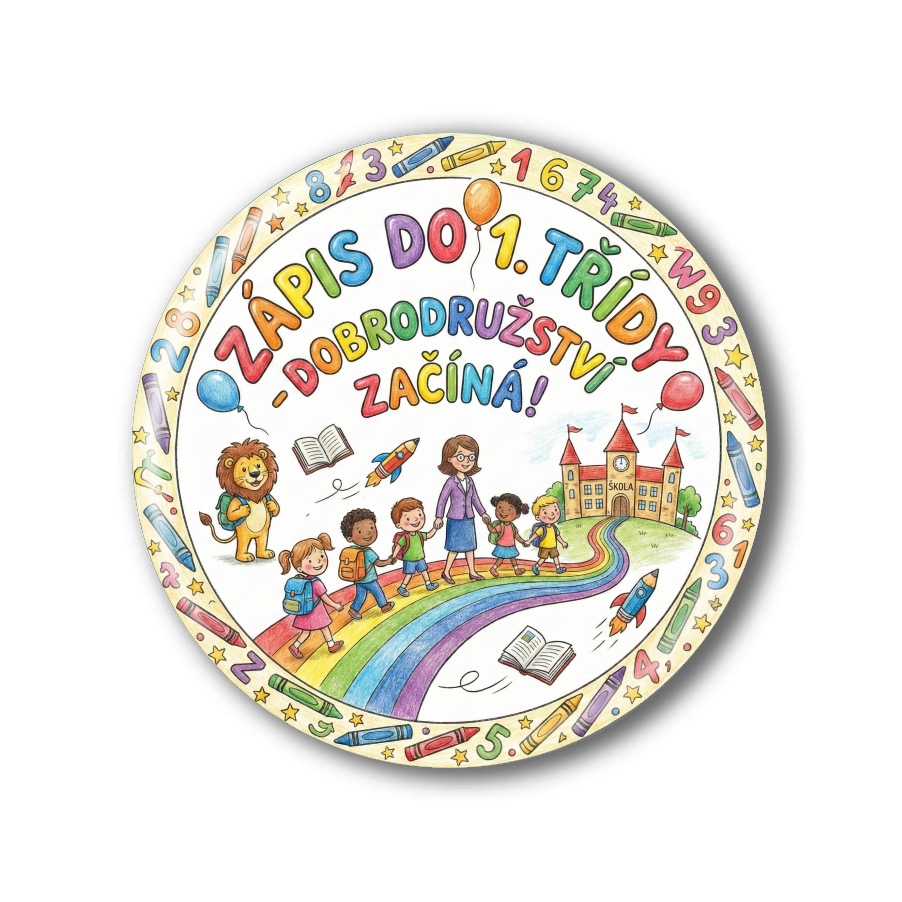 Připínací placka - Zápis do 1. třídyPlacky odesíláme ihnedcena od 25 Kčcena od 21 Kč bez DPH