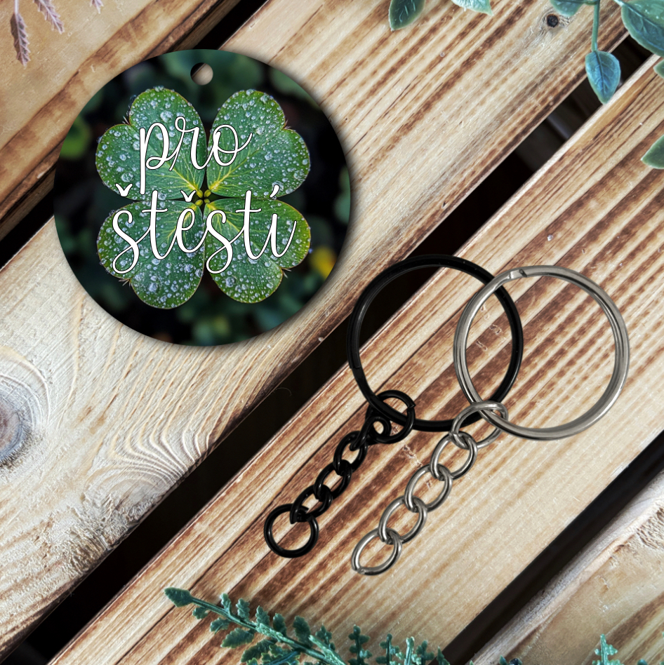 Čtyřlístek patří mezi nejoblíbenější symboly štěstí – a tenhle ho navíc nese i doslova: s nápisem „pro štěstí“. Oceníte příjemný přírodní motiv v zelených tónech se zlatým lemováním, který se snadno kombinuje. Vyberete si variantu s řetízkem nebo bez, podle toho, jak ho chcete nosit.