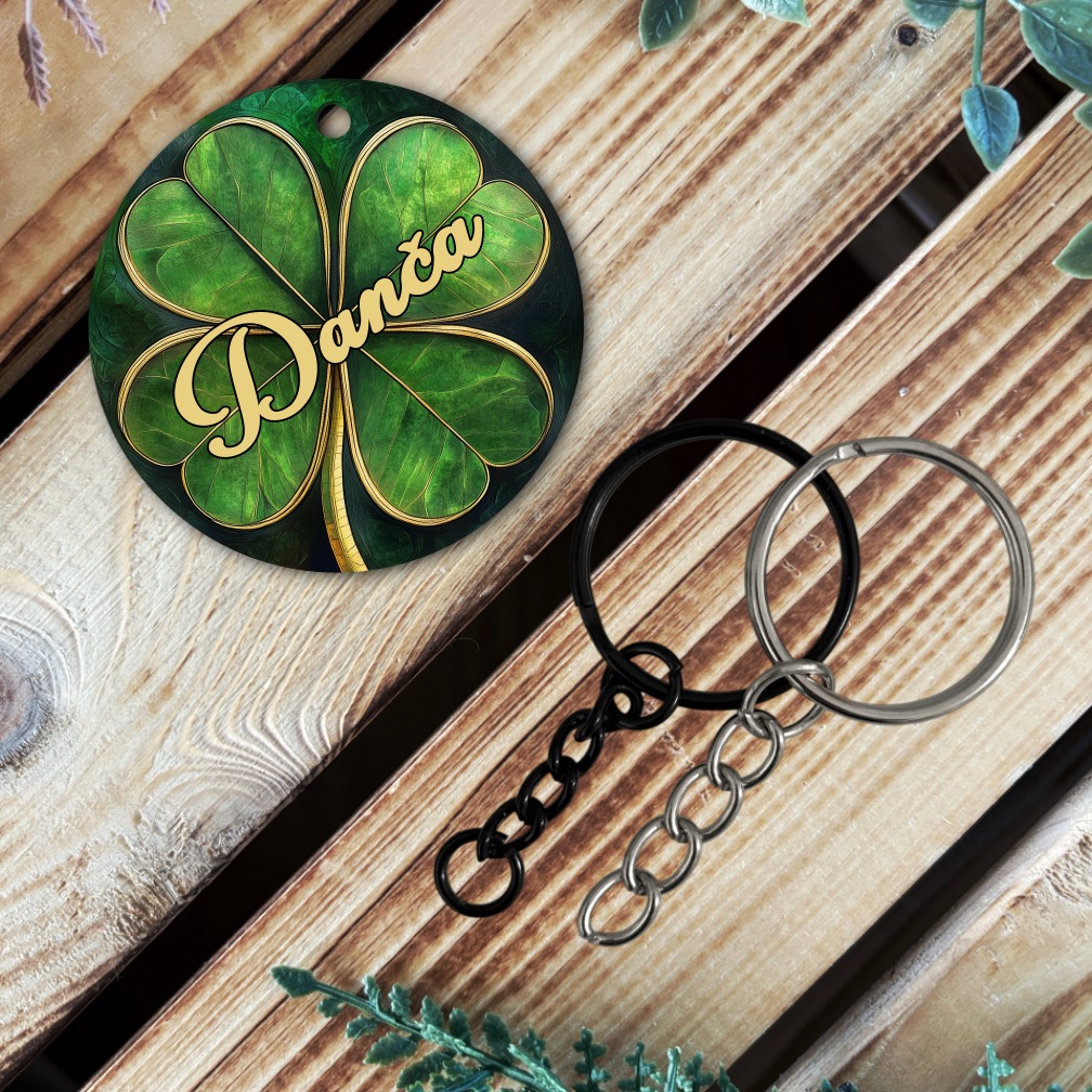 Tento originální přívěsek ve tvaru čtyřlístku s propracovaným designem a možností personalizace jménem nebo nápisem dle vašeho přání je stylovým talismanem pro štěstí. Skvělý jako osobní doplněk nebo dárek, který potěší.