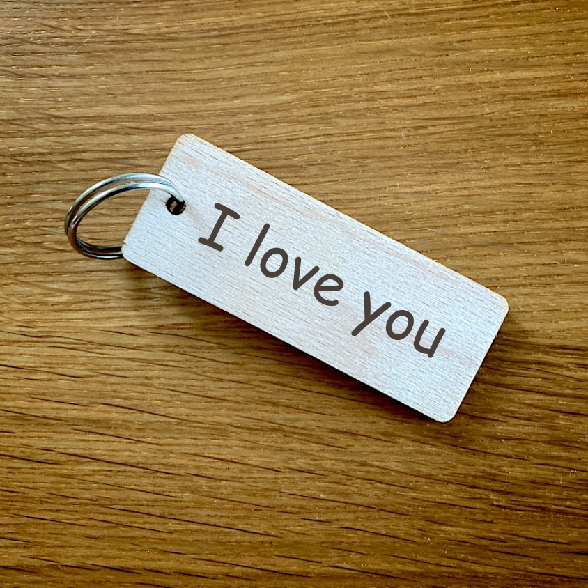 Dřevěný přívěsek na klíče s gravírovaným motivem.