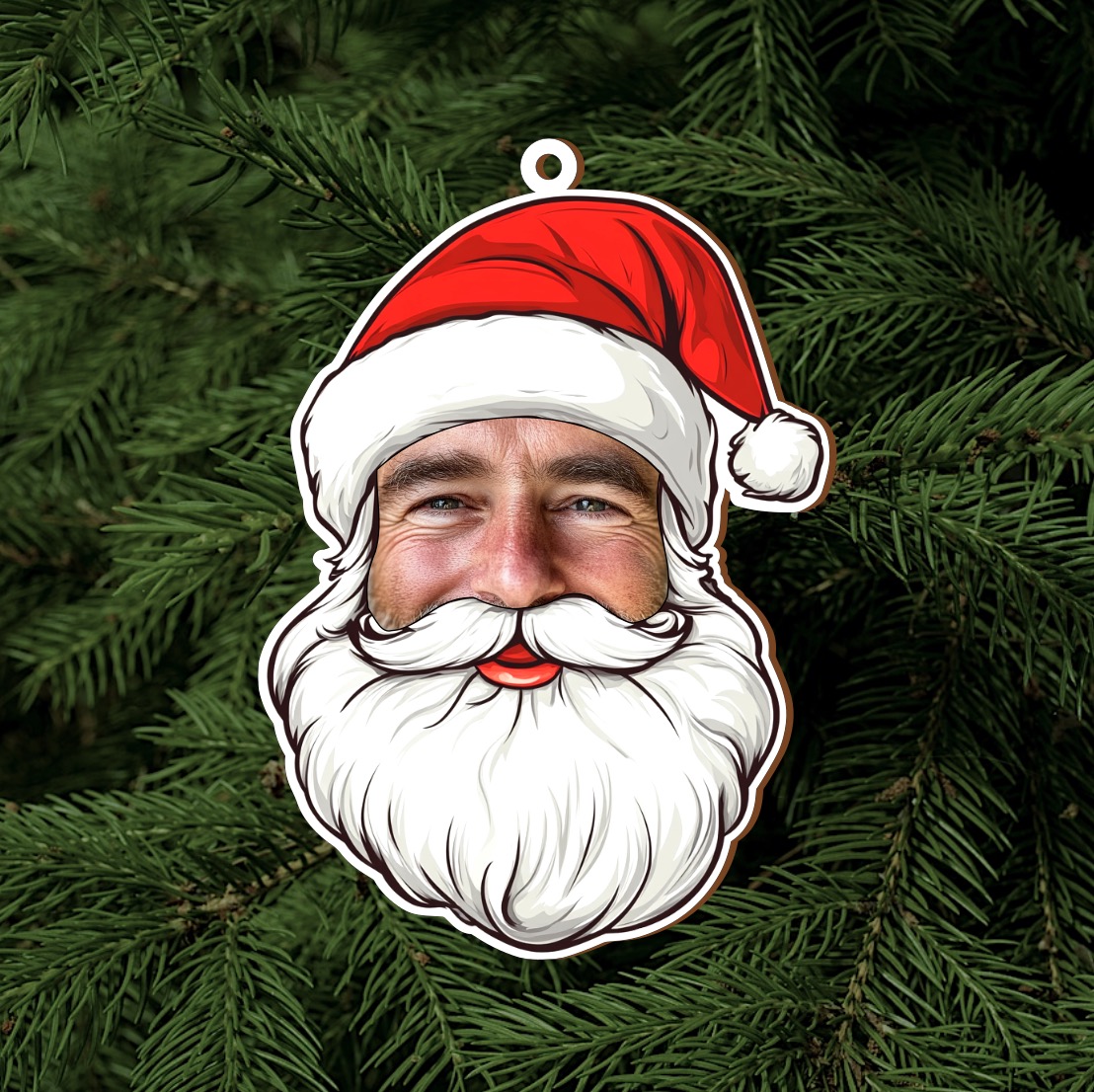 Přemýšlíte o originální vánoční dekoraci nebo ozdobě na stromeček? Objevte jedinečnou vánoční ozdobu v motivu Santy, která má váš vlastní obličej! Perfektní dárek pro rodinu, přátele nebo jako ozdoba, která každý rok rozzáří váš domov s osobním dotekem. Stačí nahrát fotku obličeje a my vytvoříme Santovu tvář podle vás!