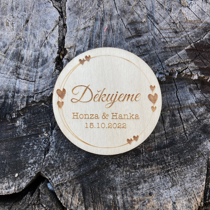 Při laserovém vypalování do dřeva vzniká na povrchu dřeva v těsné blízkosti vypáleného motivu kouřový opal v medovém odstínu. Někdo ho má rád a někdo zase přeferuje ostrý kontrast mezi motivem a povrchem dřeva, proto nabízíme možnost volby (ukázku naleznete zde v galerií obrázků). Pokud si medový opal nepřejete, tak po gravírování vám magnetky ještě navíc jemně přebrousíme a vyčístíme stlačeným vzduchem.