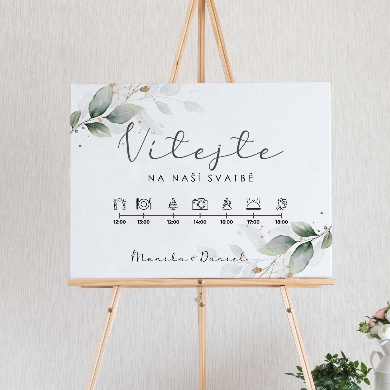 Vaše jména, časy a jednotlivé události svatby nám prosím napište do poznámky k objednávce. Před výrobou vám zašleme grafický náhled ke schválení.