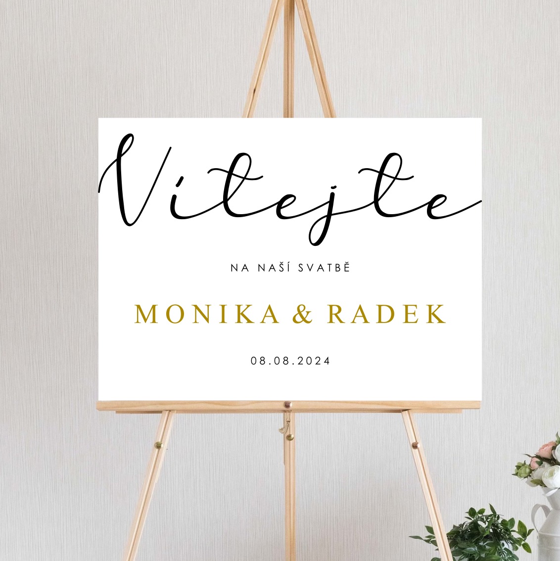 Svatební uvítací ceduli můžete kdekoliv jen tak opřít, nebo ji usadit například na malířský stojan a nebo ji zavěsit na hřebíček jako běžný obraz. U této cedule vám na přání rádi změníme barvy textu i pozadí do barev vaší svatby.