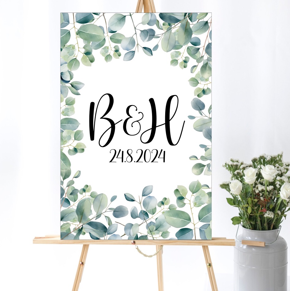 Svatební uvítací ceduli můžete kdekoliv jen tak opřít, nebo ji usadit například na malířský stojan a nebo ji zavěsit na hřebíček jako běžný obraz.
