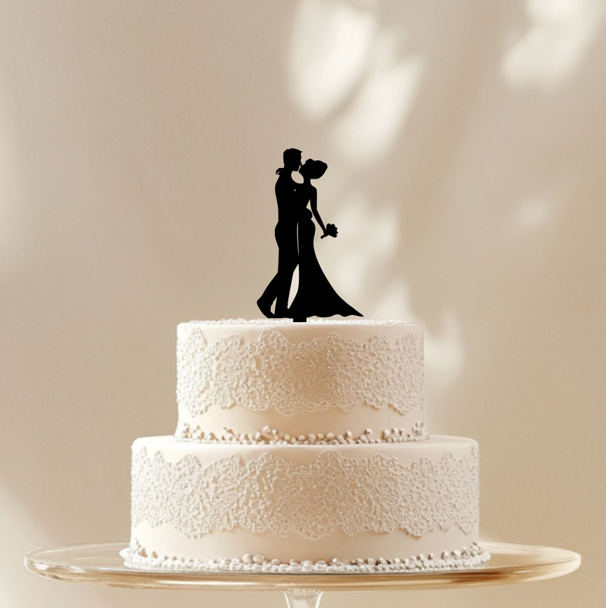 Svatební zápich z černého plexiskla je elegantní a moderní dekorace na svatební dort, která dokonale podtrhne význam vašeho výjimečného dne. Stylizovaná silueta ženicha a nevěsty v romantickém objetí zachycuje čistotu lásky a spojení, které tento okamžik symbolizuje. Černé plexisklo s lesklým povrchem dodává zápichu sofistikovaný a výrazný vzhled, který na dortu krásně vynikne.