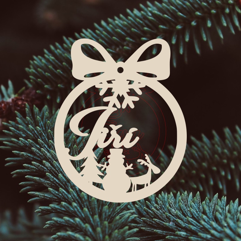 Dřevěná vánoční ozdoba na stromeček s vyřezaným jménem Jiří.