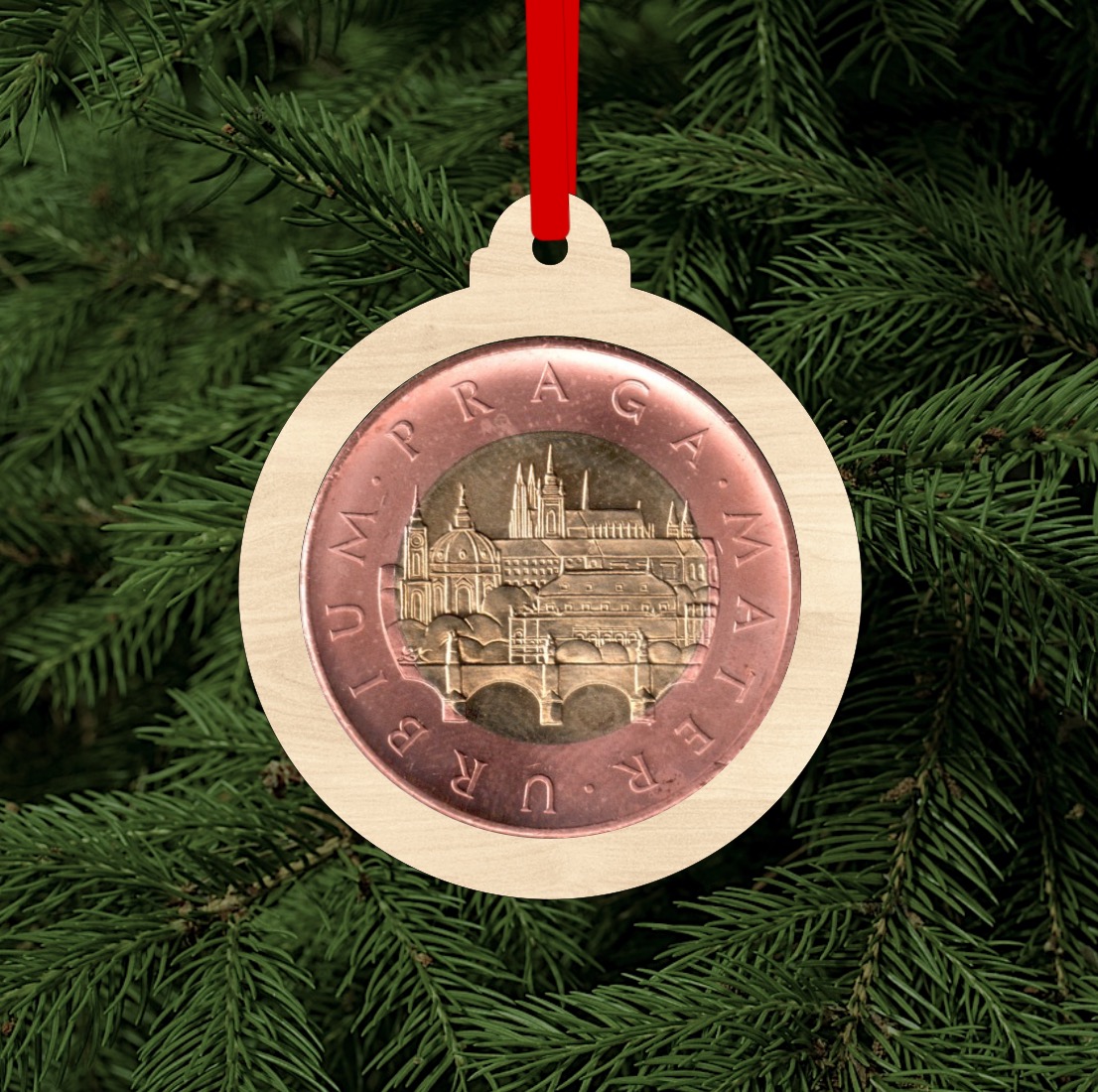 Přidejte originalitu do svých Vánoc s naší jedinečnou dřevěnou ozdobou ve tvaru baňky, která obsahuje otvor pro minci v hodnotě 50 Kč. Tato stylová a nápaditá ozdoba kombinuje krásu dřeva s kouzlem české mince, což z ní činí perfektní dekoraci pro váš vánoční stromek nebo jako dárek pro vaše blízké.