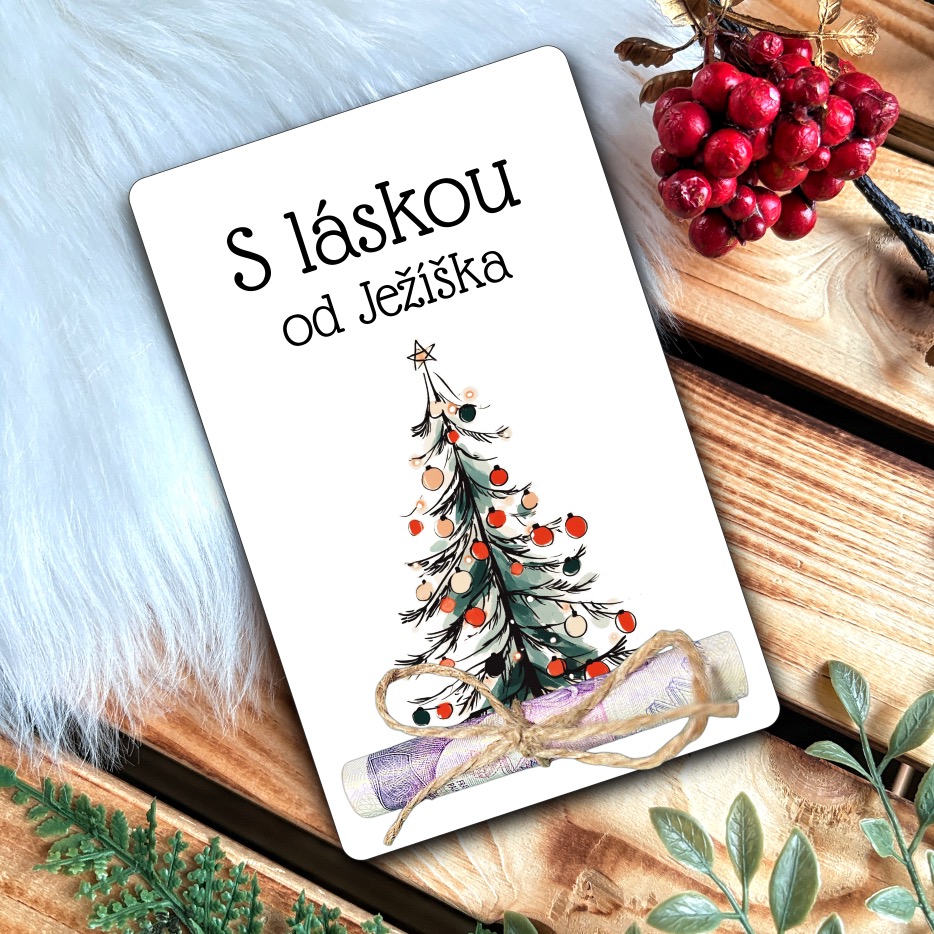 Překvapte své blízké stylovým vánočním přáním na peníze!  Naše přáníčka jsou nejen praktická, ale i veselá díky krásným motivům, jako jsou roztomilý sob, vánoční stromeček nebo usměvavý Santa.