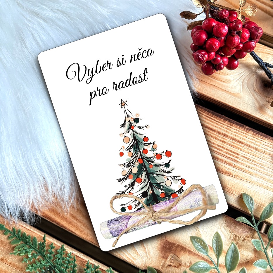 Překvapte své blízké stylovým vánočním přáním na peníze!  Naše přáníčka jsou nejen praktická, ale i veselá díky krásným motivům, jako jsou roztomilý sob, vánoční stromeček nebo usměvavý Santa.