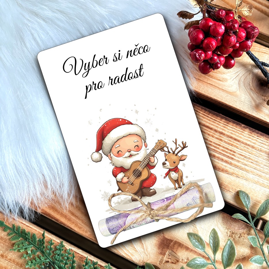 Překvapte své blízké stylovým vánočním přáním na peníze! Naše přáníčka jsou nejen praktická, ale i veselá díky krásným motivům, jako jsou roztomilý sob, vánoční stromeček nebo usměvavý Santa.
