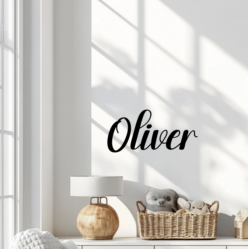 Vinylová samolepka se jménem dle vašeho přání ve vyobrazeném stylu písma je dekorace na míru, která umožňuje dodat vašemu interiéru osobní dotek. Vyberte si velikost a barvu podle svého přání a my vaše jméno vyrobíme přesně podle vašich představ. Samolepka je vhodná k aplikaci na různé povrchy, například na zdi, dveře, nábytek nebo jiná hladká místa.