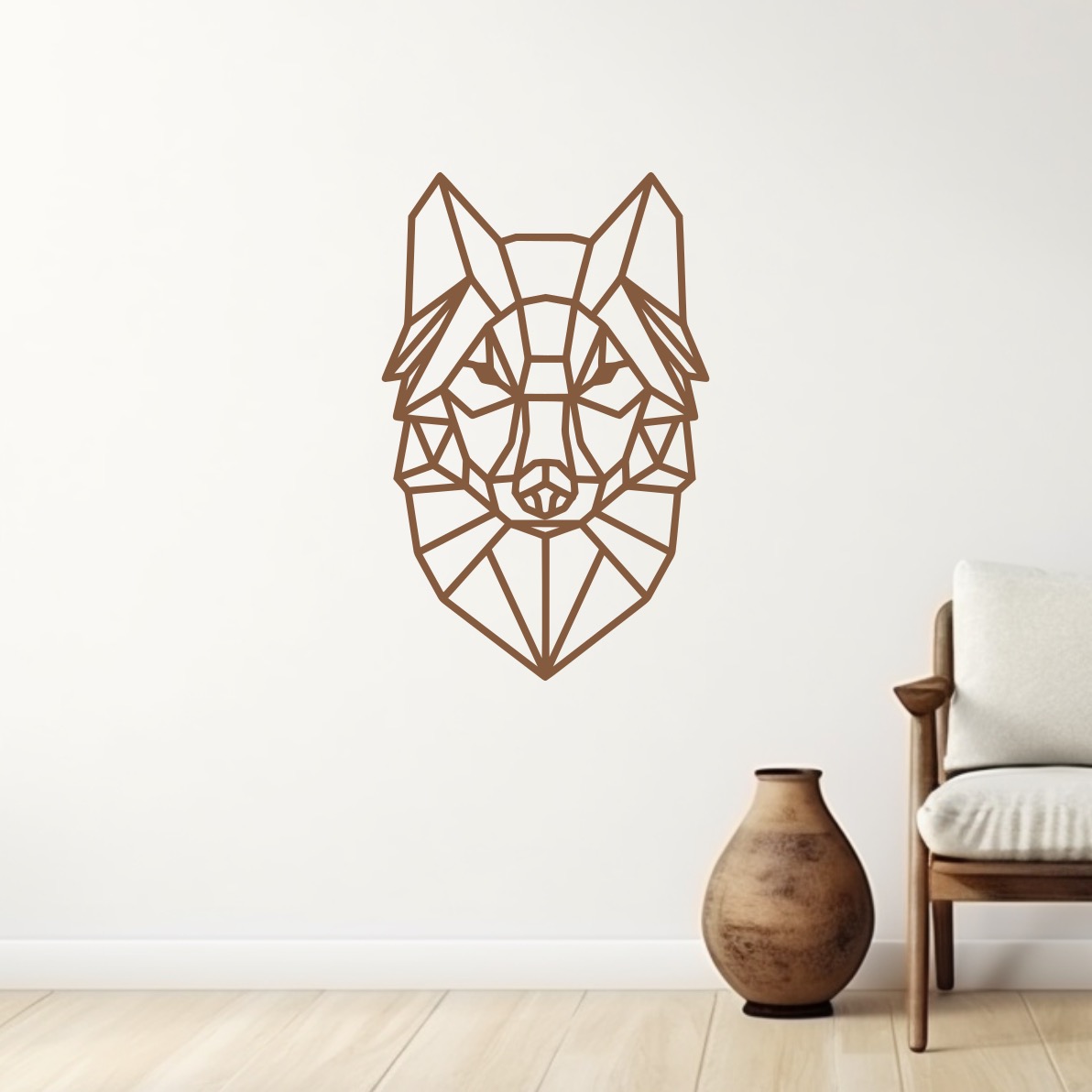 Dřevěná dekorace na stěnu - geometrická hlava vlka.