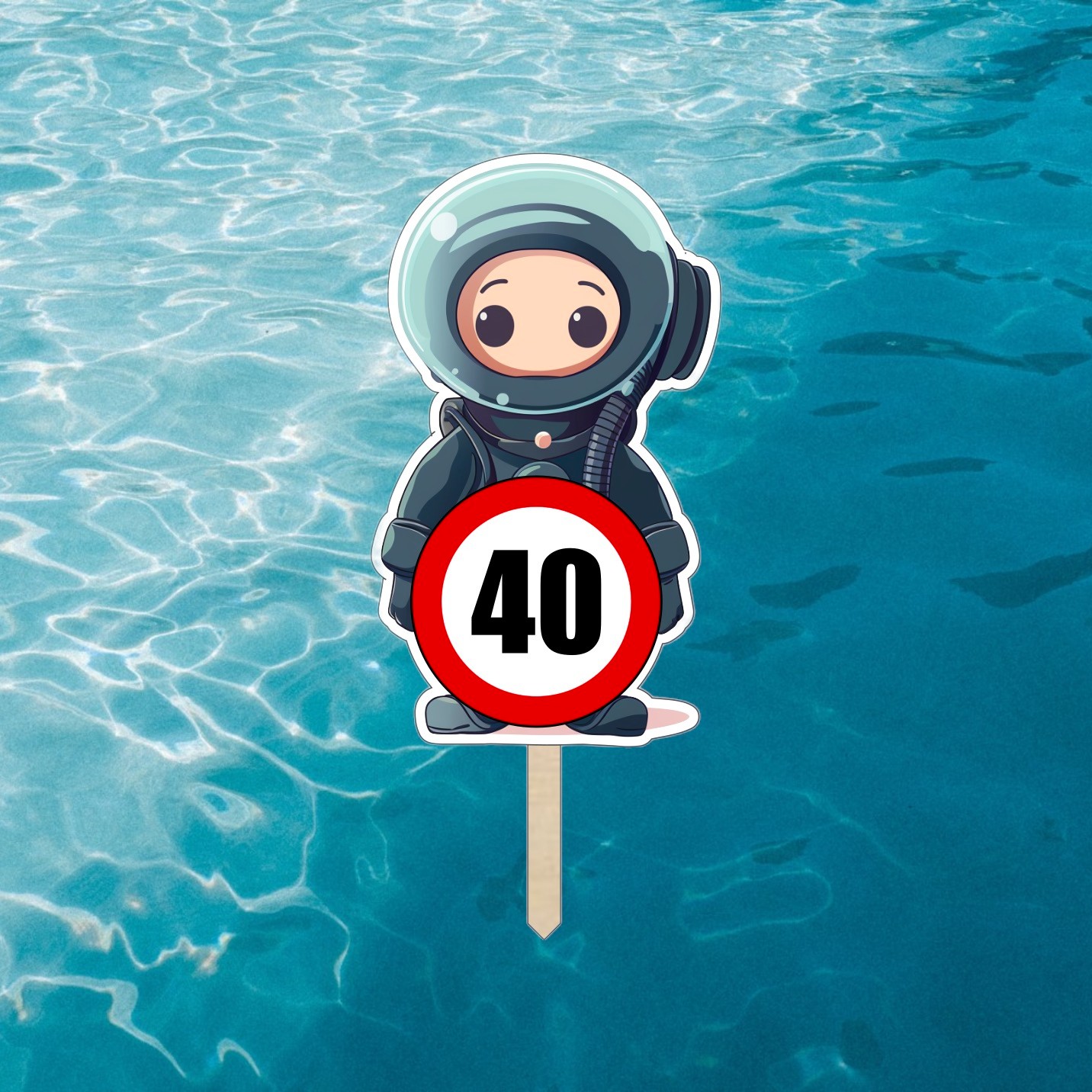 Ozdobný dřevěný zápich do dortu s motivem potapěče a rokem oslavence, díky kterému i z obyčejného dortu vytvoříte dort jedinečný, který bude každý obdivovat.