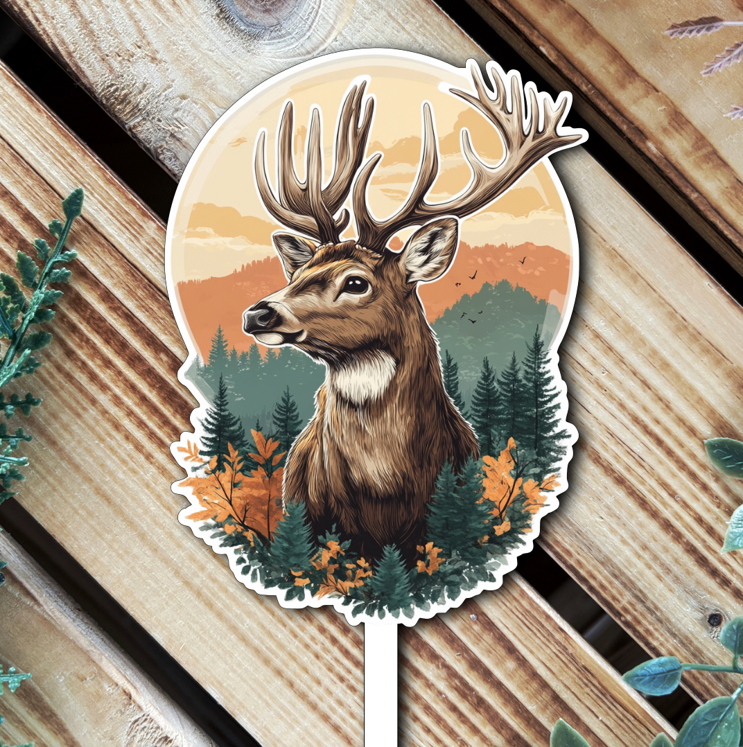 Dekorace, která dodá vašemu dortu výjimečný vzhled! Tento zápich s nádherným motivem jelena v lesním prostředí kombinuje nadčasovost a eleganci. Ideální volba pro milovníky přírody, rustikální oslavy, narozeniny nebo tematické svatby.